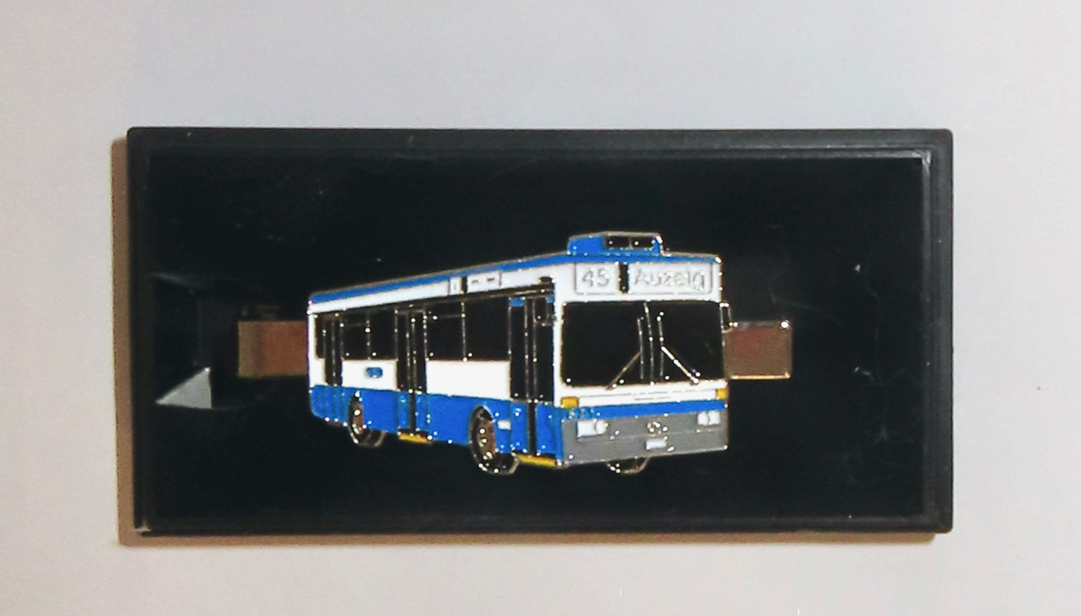 Krawattennadel mit dem VBZ-Hochlenkerbus, ein Zürcher Kult-Fahrzeug